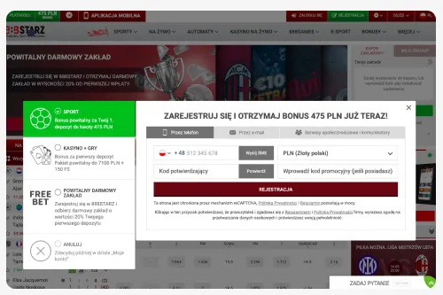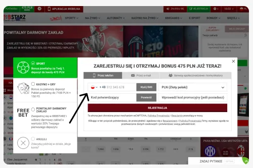 Nowi użytkownicy z Polski mogą skorzystać z kodu promocyjnego 888Starz, aby zwiększyć swój bonus. Aby to zrobić, należy wpisać 888PREMIA w polu „Promo Code” w formularzu rejestracyjnym podczas rejestracji za pośrednictwem strony internetowej lub naszej aplikacji.