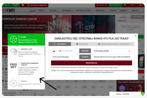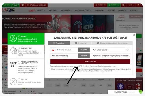 Dokończ rejestrację na oficjalnej stronie 888Starz w Polsce.